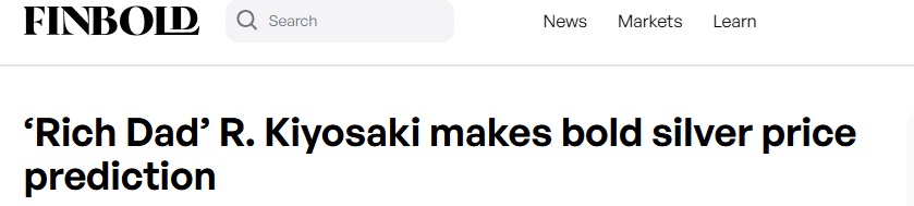 24K99讯 在持续的白银牛市中,畅销个人理财经典《富爸爸穷爸爸》的作者罗伯特·清崎(Robert Kiyosaki)再作出大胆的预测,即白银价格可能在一年内再暴涨超40%。