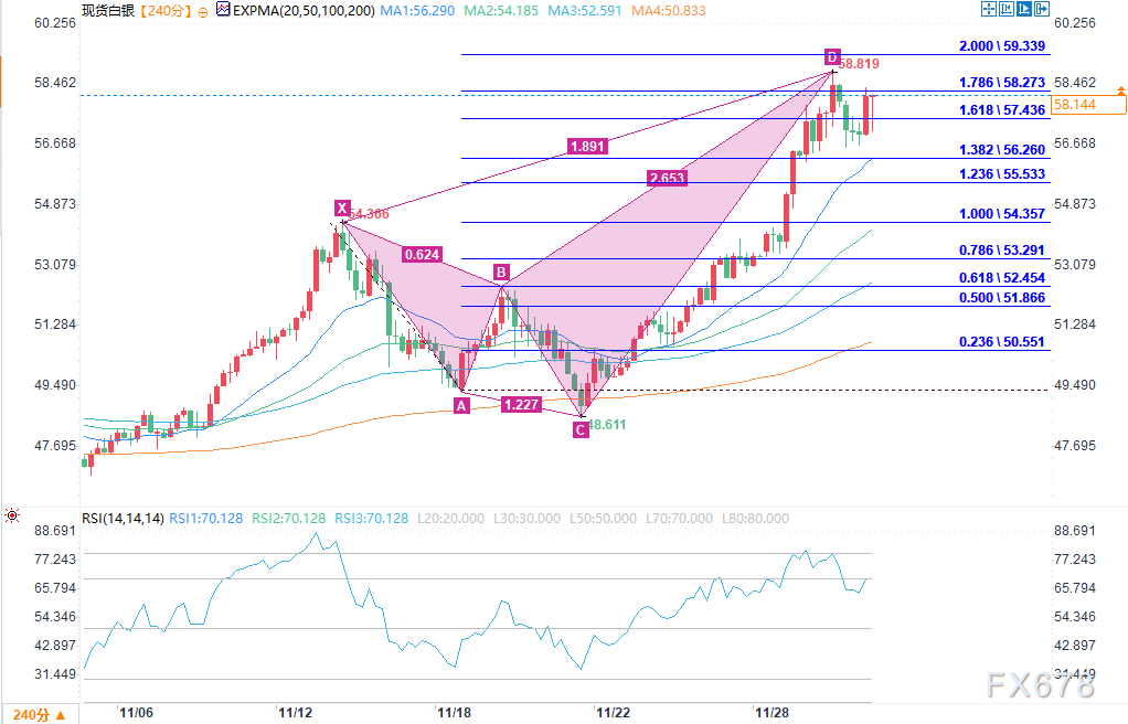 当前现货白银的核心趋势逻辑是蝙蝠谐波形态驱动的多头行情,技术面与基本面形成共振,整体呈现“上攻为主、回调辅助”的节奏。