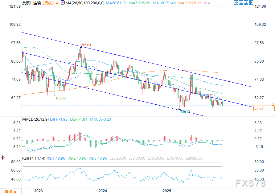2025年11月的最后几周,原油价格一直被压得喘不过气,西德克萨斯轻质原油期货的价格在每桶58.6美元上下徘徊,当时的关键支撑位在56—57美元。这里要给小白解释一下支撑位:就是价格跌到这个区间时,通常会有买盘入场托住价格,但如果支撑位被跌破,就像大坝被冲垮一样,油价可能会迎来一波更大幅度的下跌。