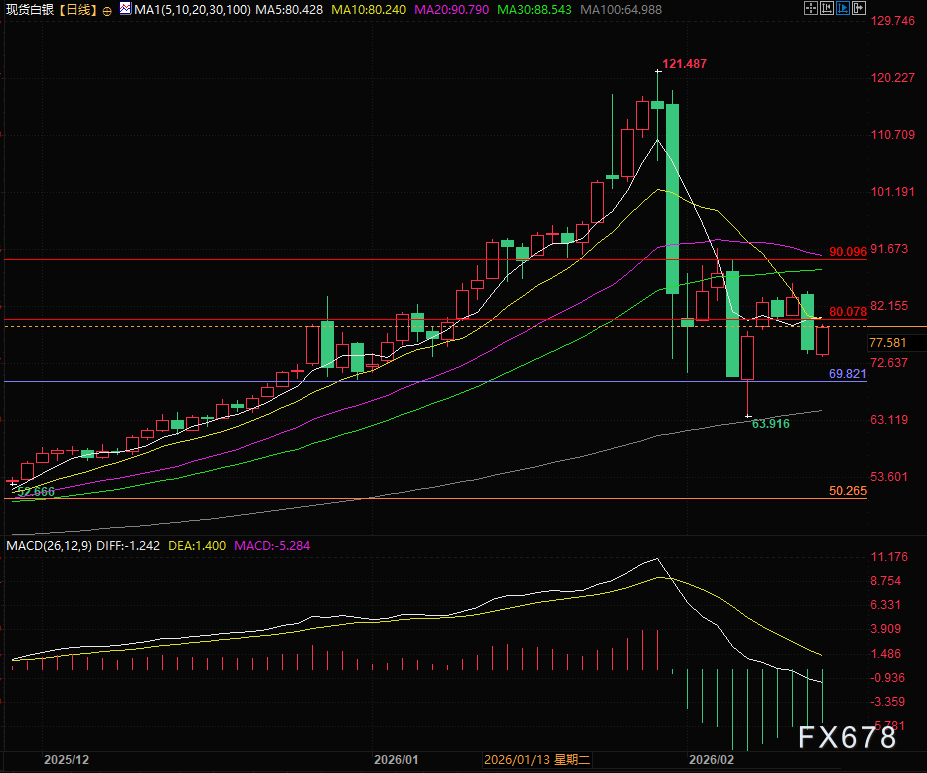 从交易角度看,白银价格1月29日创下121美元历史高位后,上周抛售中一度跌至67美元,已接近预测低点,当前77美元左右的价格区间,为趋势交易者提供了低吸布局机会。