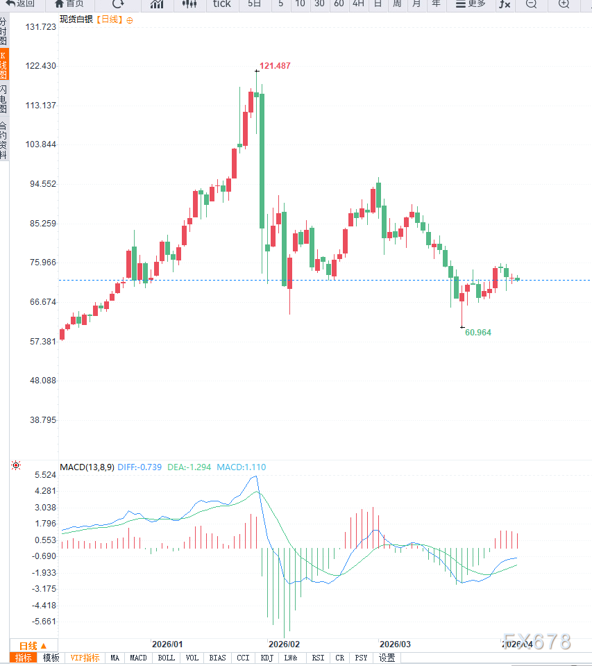 汇通财经APP讯——周二欧洲时段,现货白银维持在72.50美元附近窄幅波动,整体呈现方向不明但偏弱运行格局。当前市场焦点集中在地缘局势与宏观政策预期之间的博弈。