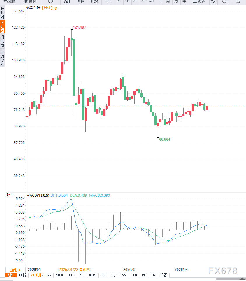 汇通财经APP讯——周三欧洲早盘,白银价格明显走强,XAG/USD上涨约2.3%,运行于78.50美元附近。从盘面来看,白银在连续调整后出现反弹,主要受到宏观环境变化的推动。