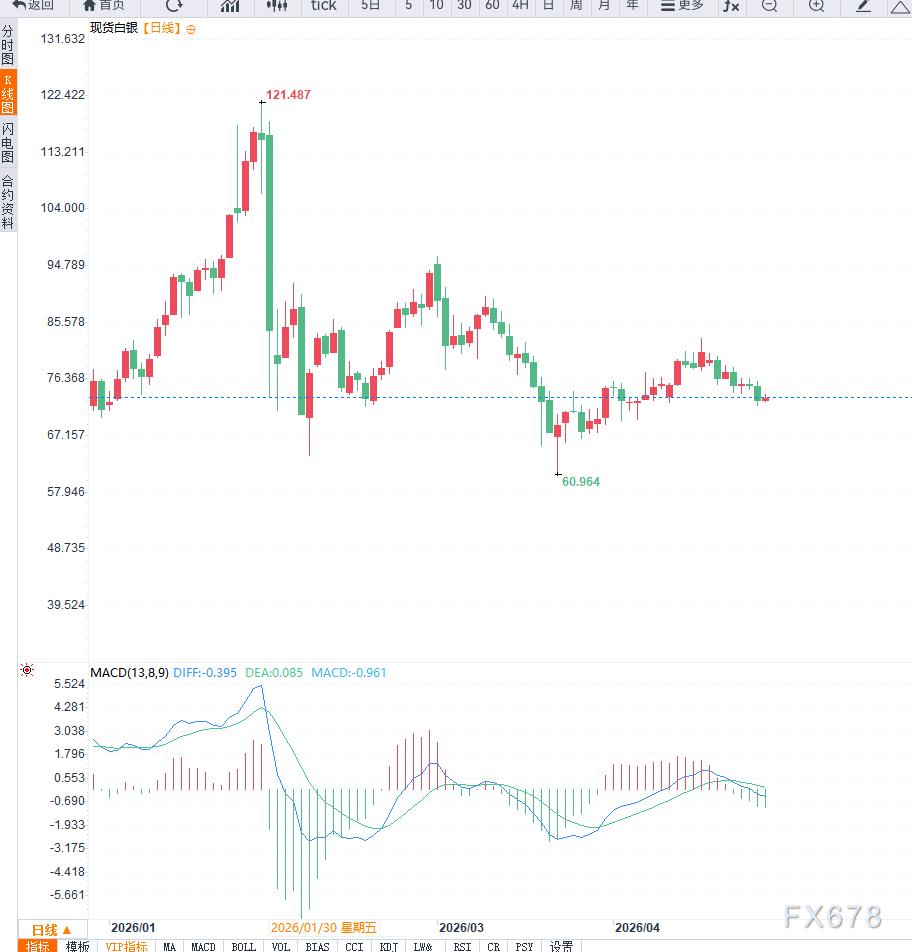 此外,据市场调查显示,美国方面正考虑延长对伊朗的经济与能源限制措施,这可能进一步加剧能源市场紧张局势,并强化通胀预期。在这一背景下,市场对“长期高利率”的预期升温,美元获得支撑,从而限制白银上行空间。