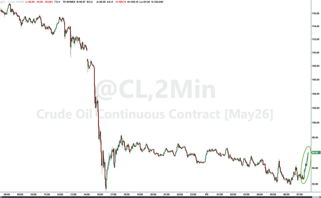 伊朗外交部发言人巴加埃也在社交媒体上发布了一段视频,视频中白宫新闻秘书莱维特今天早些时候告诉记者,黎巴嫩不属于为期两周的停火协议的参与国。巴加埃在这段短视频旁写道:“如果这还不是美国又一次提前背信弃义的例子,那什么才是?!”巴加埃还转发了巴基斯坦总理谢里夫昨天发布的帖子,帖子中称伊朗和美国“已同意在包括黎巴嫩在内的所有地区立即停火”。 受这一消息影响,美、布两油短线一度上扬近2美元,分别触及94.53美元/桶和92.92美元/桶。尽管这项脆弱的停火协议看似已面临瓦解风险,但截至美东时间周三下午2点59分,美国原油价格仍下跌逾15%,报95美元/桶附近。