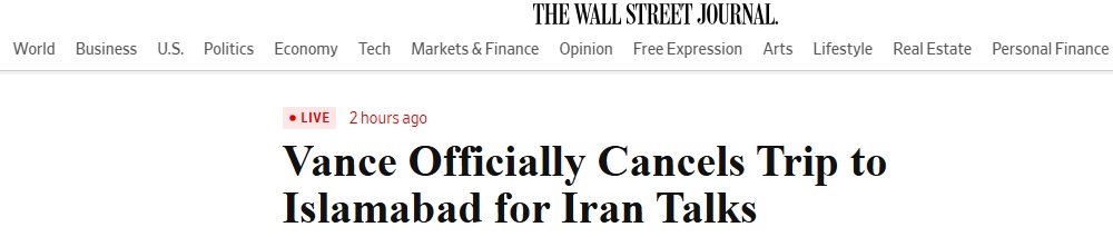 #伊朗危机追踪#FX168财经报社(亚太)讯 美国《华尔街日报》当地时间周二(4月21日)晚间最新报道称,据一位白宫官员称,美国副总统万斯(J.D. Vance)已无限期取消其前往巴基斯坦伊斯兰堡的行程,理由是特朗普总统宣布延长停火协议,并呼吁伊朗方面提出统一方案。