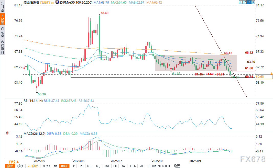 WTI原油未能回升至关键均线上方,叠加技术面看空信号,再加上欧佩克+增产预期升温与需求疲软,多重因素指向短期内原油或面临进一步下行风险。除非油价重新站上200日均线支撑位,否则整体前景仍偏空;若跌破59.74美元,抛售压力或将加速。