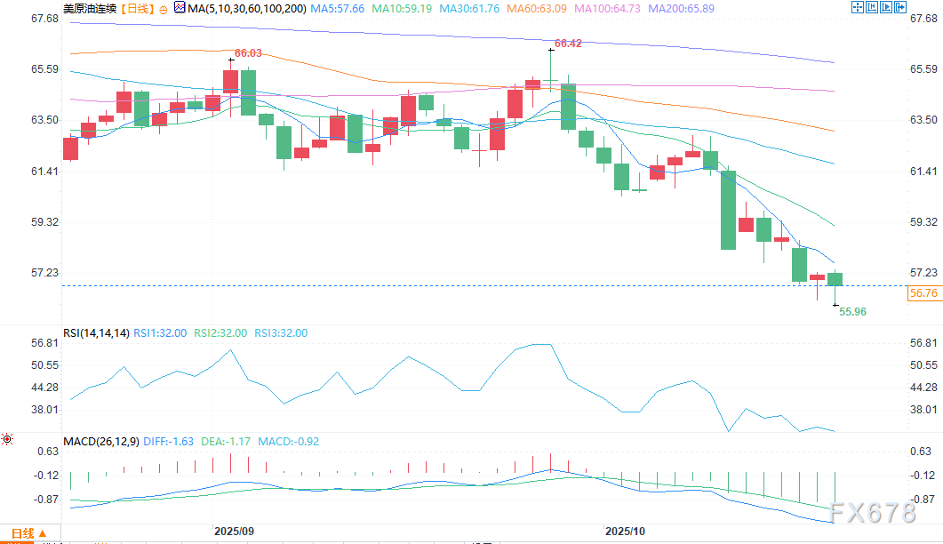 汇通财经APP讯——周一(10月20日),原油价格在连续三周下跌后,盘中再跌约0.7%。当前全球产量持续增长,而经济增速却在放缓,这一供需矛盾对油价形成了压力。此外,加沙协议签署相关的风险溢价,以及解决乌克兰冲突的努力不断加强,都导致风险溢价开始下降。同时,目前油价未达到超卖状态,这意味着未来几个月仍有进一步下跌的空间。