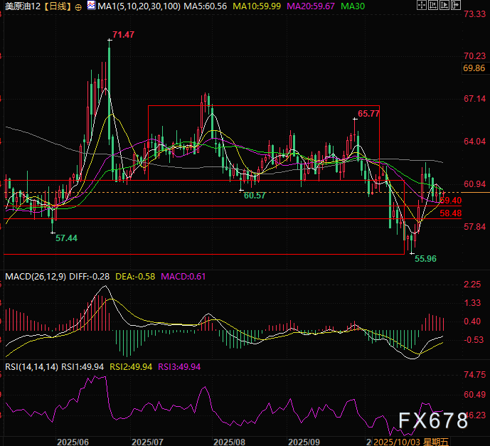 原油如能继续维持当前价格水平,则5日线、30日线会下移,并成为支撑,油价有望突破61.30,回归到上箱体,并在上箱体区域运行。