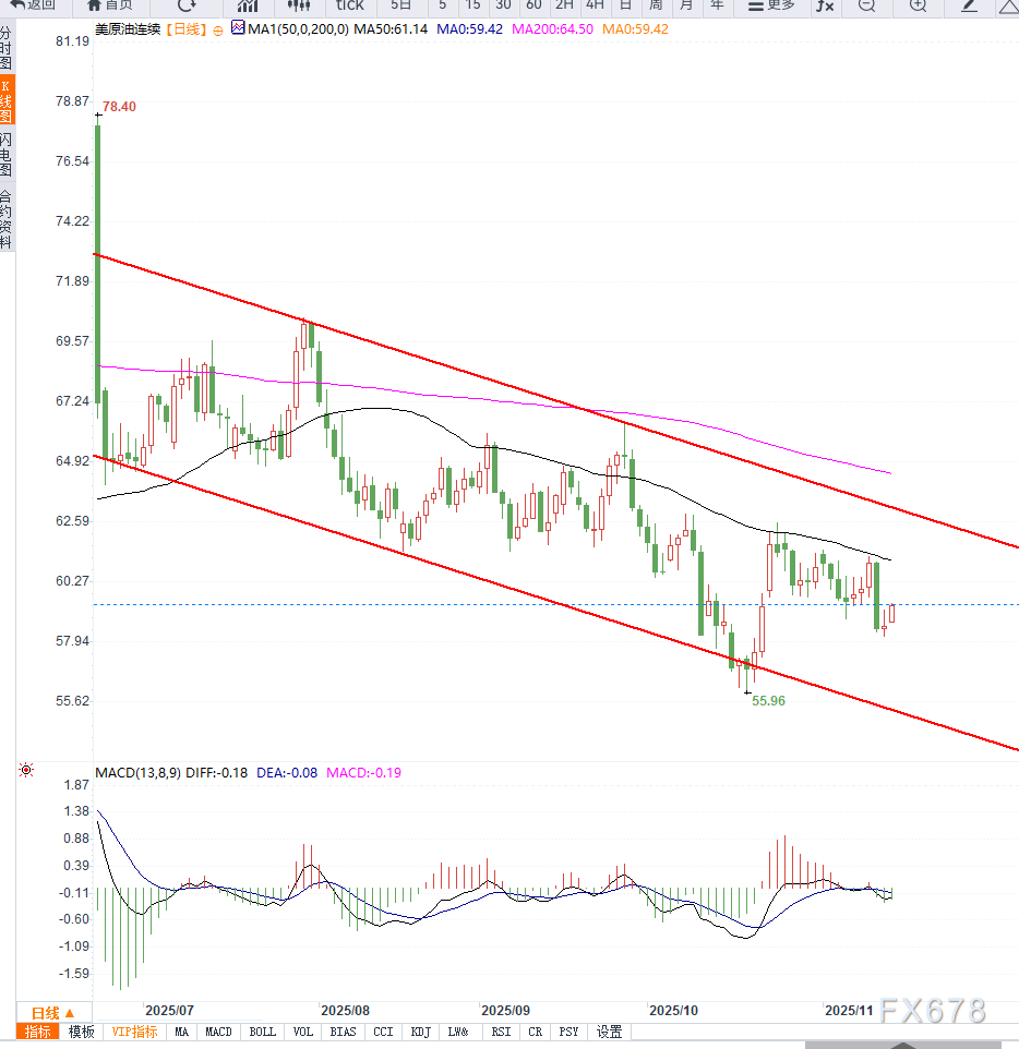 短期来看,59美元区间仍是重要防守位,若跌破该区,油价可能进一步回踩至55–56美元;而若成功站上60美元,则有望挑战更长周期的趋势阻力。
