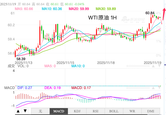原油周二震荡上行,当天最低59.2,最高60.8,日线收阳于60.5,日线看油价受阻于61一线,今先看此位能否上破,四小时线,震荡上行,小时线,震荡上行,61受阻短线有回调的势头,下方关注60和59,日内操作思路以震荡上行为主,早间API数据利空,关注晚间EIA数据表现