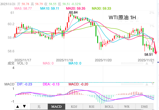 WTI原油价格小幅上涨,交易员在美方对两家俄罗斯石油公司实施制裁的最后期限前保持谨慎。技术面依然看跌