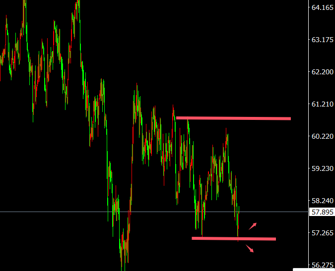 从下方支撑角度观察,56.8 至 55.8 美元的区间构成下一道关键防守带。如果油价随后无法在此区域企稳,那么更深的调整空间将被打开。