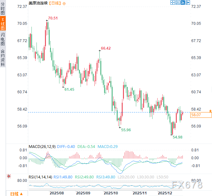 汇通财经APP讯——周二(12月30日)亚欧时段,美原油价格于58.00美元/桶附近震荡,当前油价走势反映了短期地缘政治风险与中期基本面之间的复杂拉锯。