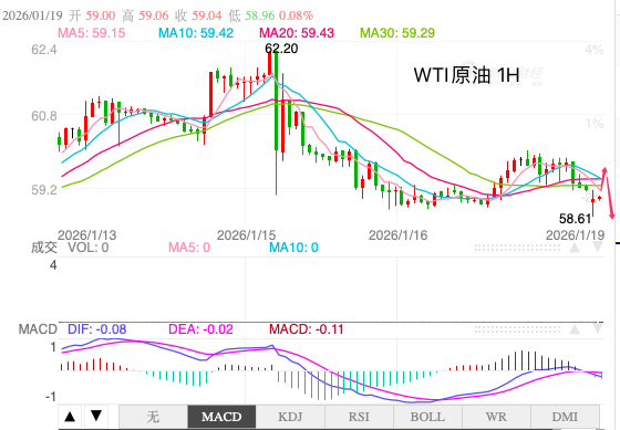 亚洲交易时段,国际原油价格延续回落态势。近月西得州中质油期货下跌0.32%至每桶59.16美元。此前推动油价反弹的地缘紧张情绪逐渐降温,投资者的关注点开始从潜在供应中断转向更为现实的供需基本面。