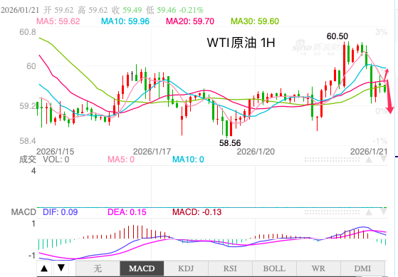 周二欧洲早盘交易时段,WTI价格在每桶59.25美元左右波动。由于伊朗原油供应担忧有所缓解,WTI价格小幅走低,交易员们正密切关注美国试图控制格陵兰岛的行动所带来的影响。