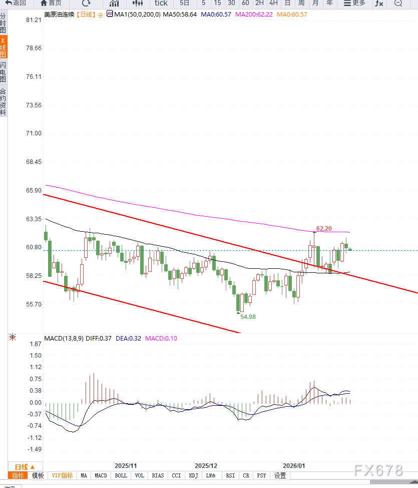 反之,若油价有效跌破 59.20美元,则意味着前期整理平台被破坏,回调空间可能进一步打开,短线下方关注 58.00美元附近 的支撑力度。