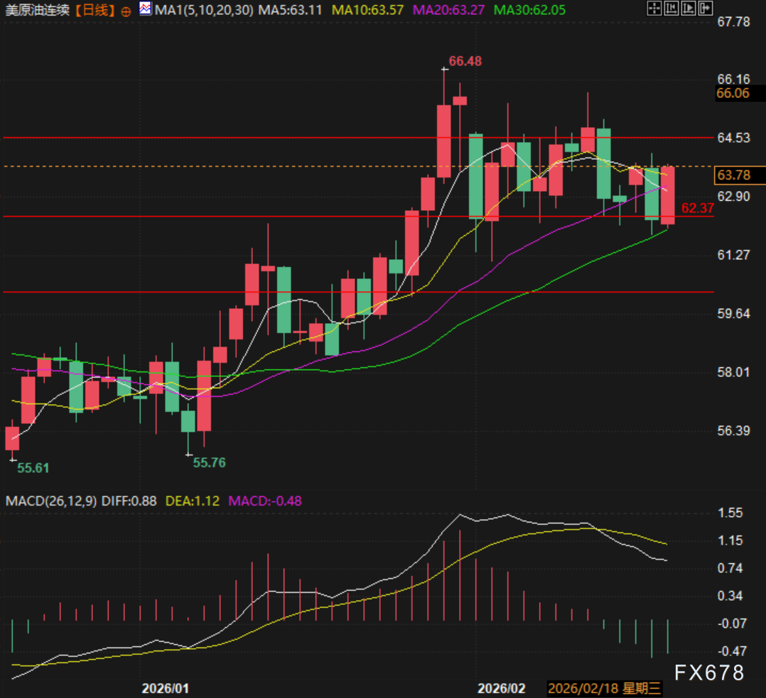 汇通财经APP讯——周三(2月18日)欧洲时段盘中,美原油期货显著走强,快速拉升超2%交投于63.75美元,受多重地缘风险与供应扰动叠加推动,市场避险情绪与供应担忧共同构成油价上行核心支撑。
