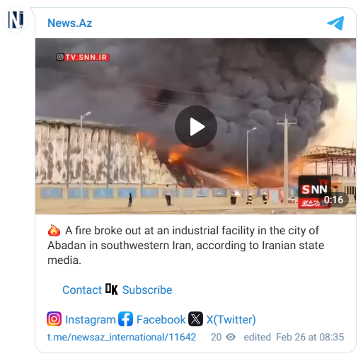 据半官方媒体ISNA与当地市政消防安全负责人说法,起火点位于园区内聚合物工厂,暂无人员伤亡;园区内拥有大型炼油设施,但报道称暂无迹象显示炼油厂受波及,现场出动多支消防力量扑救。