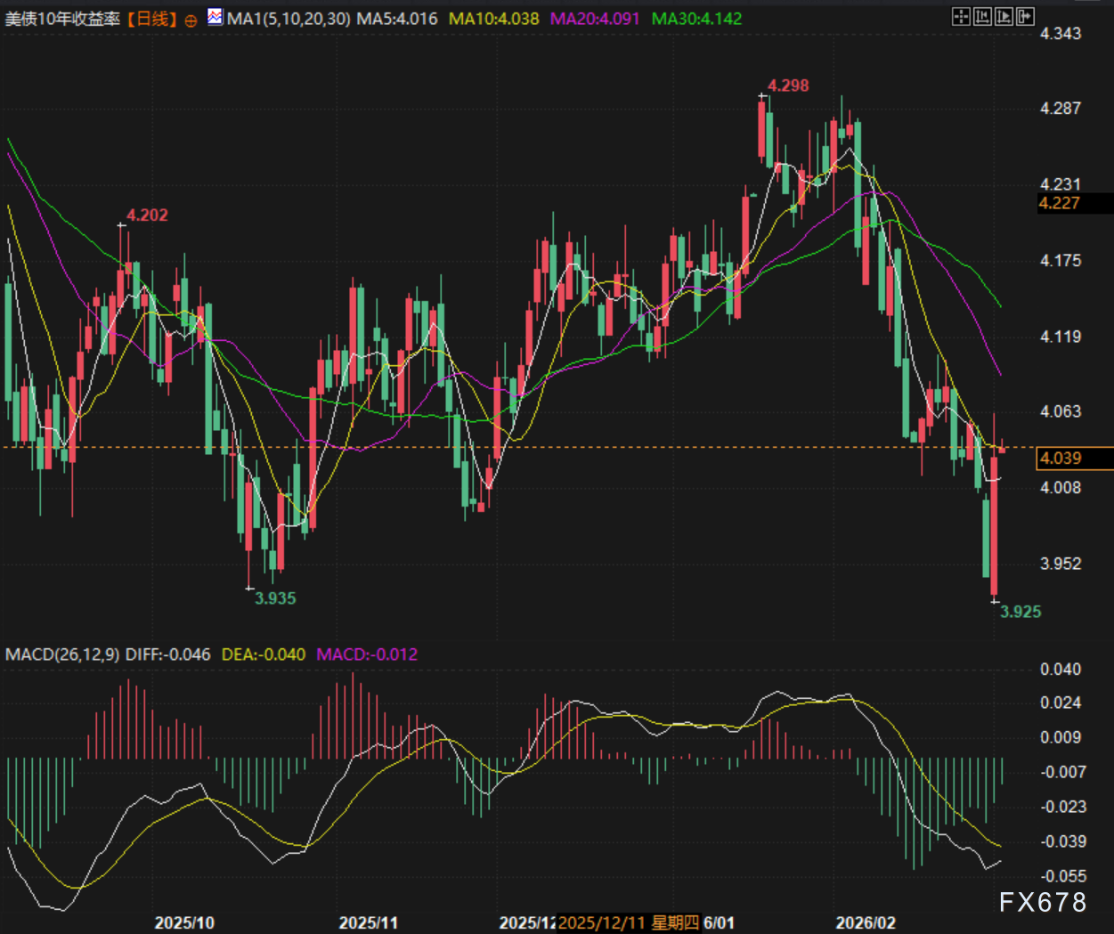 受到纽约时段美股整体低开探底回升影响,全球权益市场风险偏好回升,导致美债中避险资金出逃,美债收益率快速回升,叠加美元指数回升一定程度压制了黄金和原油,给行情出现了短暂回调的机会。