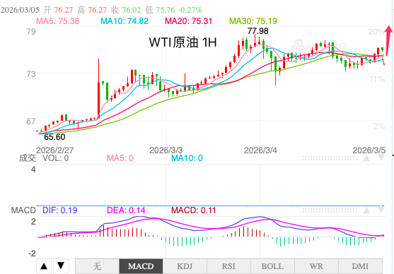国际油市周四延续强势,WTI原油亚洲时段交投于76.60美元/桶附近,录得连续第三个交易日上涨。驱动本轮行情的核心逻辑并非需求改善,而是供应中断风险的快速放大。