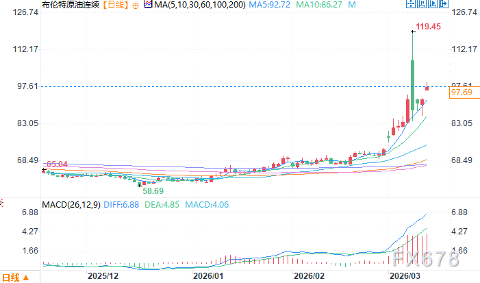 北京时间3月12日9:43 布伦特原油连续 报 98.20美元/桶