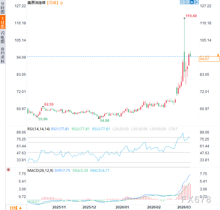 此举部分缓和了市场对供应中断的担忧,周五亚市时段,美原油价格震荡走低,现交投于每桶94.85美元附近,日内跌幅约0.9%。