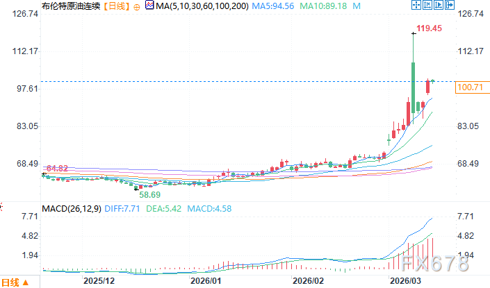 北京时间3月13日10:04 布伦特原油连续 报 100.26 美元/桶