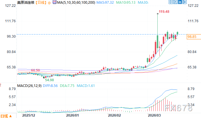 北京时间3月23日11:06 美原油连续 报 98.90 美元/桶