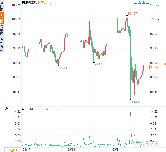 (美原油连续小时图,来源:易汇通)