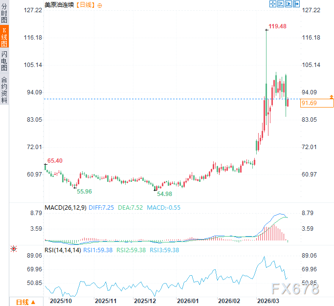 (美原油连续日线图,来源:易汇通)