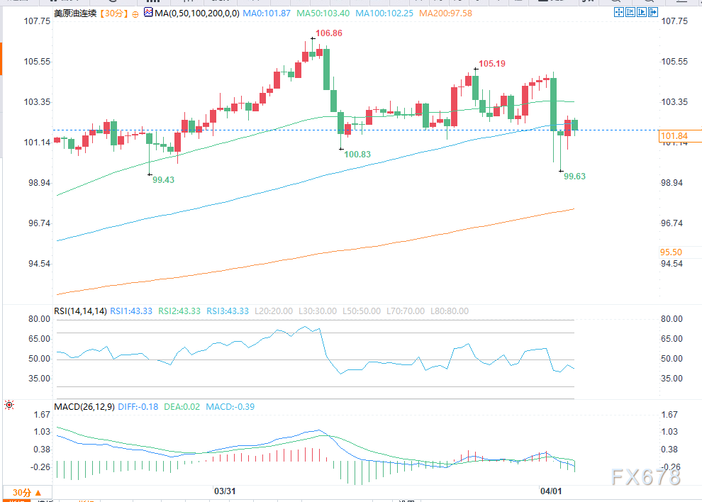 汇通财经APP讯——周三(3 月 31 日)美盘时段,北京时间 4 月 1 日凌晨,原油市场在触及阶段性高点后突然急转直下。原本试图维持强势的多头阵营,在极短时间内遭遇集中抛压,WTI 与布伦特原油双双由涨转跌,盘中波动幅度显著放大。这种 “高位跳水” 行情,并非典型的趋势反转信号,更像是获利回吐叠加高位恐惧情绪驱动的自然调整 —— 在关键整数价位附近,任何风吹草动都容易被市场放大解读,进而引发连锁反应。