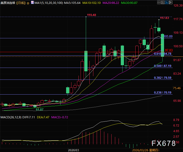 (WTI原油期货连续日线图,来源:汇通财经旗下易汇通)