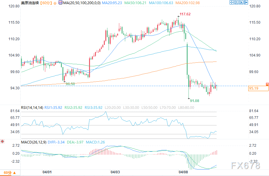北京时间02:21,WTI原油报95.46美元/盎司,跌幅15.48%。