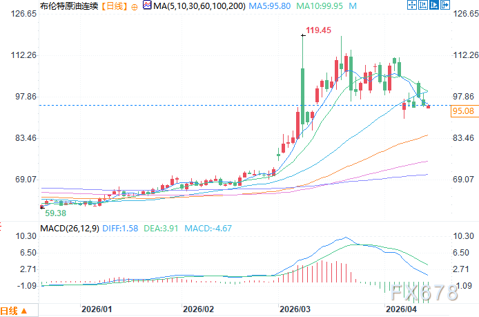 北京时间4月15日12:05 布伦特原油连续 报 95.03 美元/桶