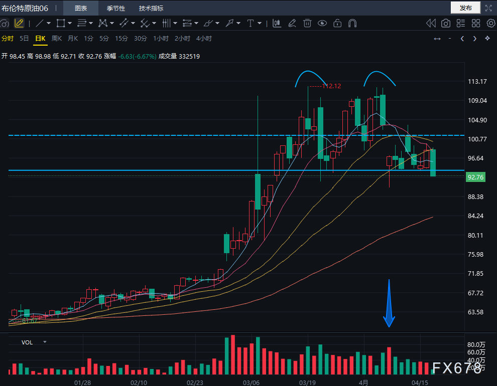 (布伦特原油6月期货日线图,来源:汇通财经旗下易汇通)