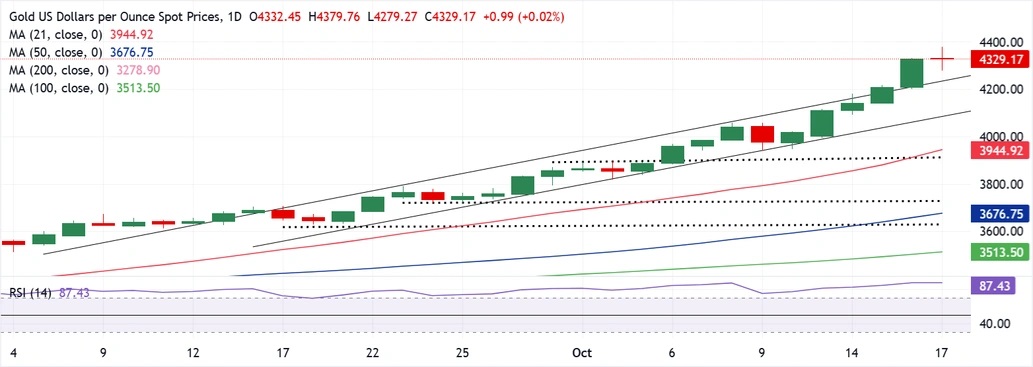 Mehta写道,在最近上涨至4380美元/盎司附近的历史新高后,黄金在周五亚洲交易时段经历了剧烈波动,这受到一轮获利了结和避险资金流的推动。
