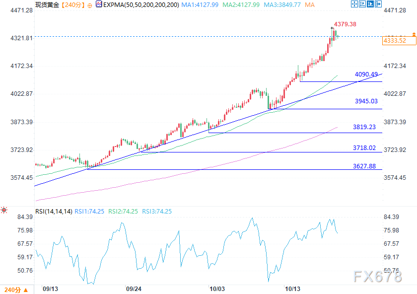 (现货黄金4小时图 来源:易汇通)