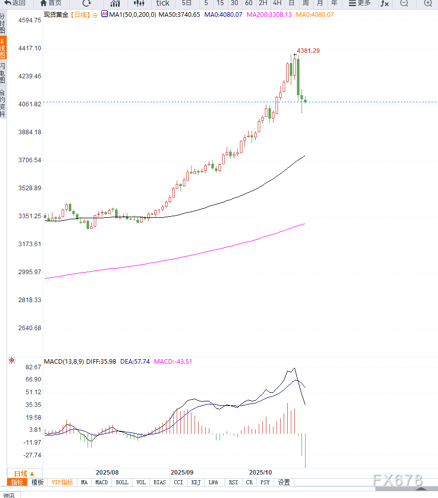 近期,黄金价格连续第三天下跌,日内回落至约每盎司4080美元,显示出市场对此前连续上涨的技术修正反应。投资者正在评估全球贸易担忧的前景,以衡量地缘政治紧张局势对避险资产的持续提振作用。