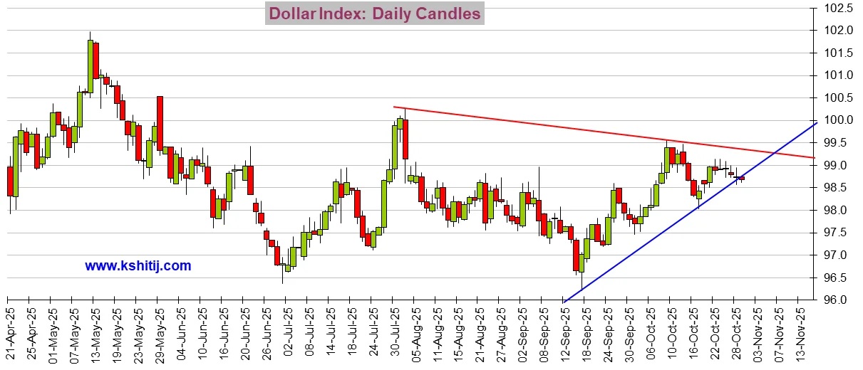 FX168财经报社(亚太)讯 周三(10月29日)亚市盘中,美元指数基本持稳,目前位于98.85附近;现货黄金交投在3960美元/盎司附近。本交易日,投资者将聚焦美联储利率决议,势必引发市场大行情。Kshitij咨询服务团队(Kshitij Consultancy Service)周三最新撰文,对黄金、美元指数、欧元/美元、欧元/日元、美元/日元、澳元/美元、英镑/美元以及美元/人民币后市走势进行前瞻分析。