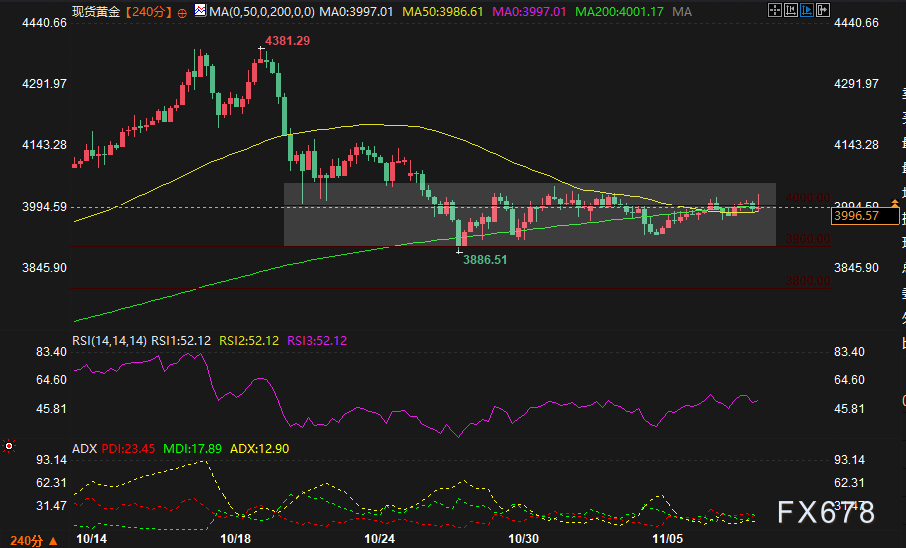 技术分析:黄金在4000美元附近区间震荡,动能疲软