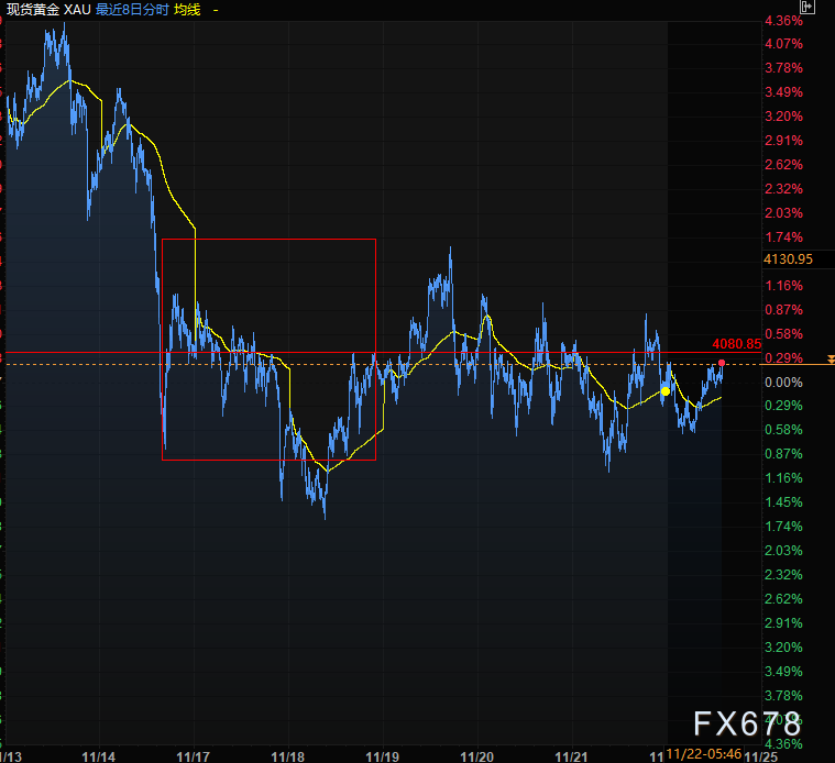 汇通财经APP讯——周一(11月24日)亚欧时段现货黄金继续震荡,连续三天走出小幅探底回升走势,近期金价一直在4050附近震荡,金价之所以未能选出方向,核心归因于近期多空均有重要市场因素在发挥作用,上周五美联储鸽派措辞升温、12月降息预期重燃及美元指数回调形成的支撑;与此同时,俄乌冲突缓和预期则降低了黄金的避险溢价。