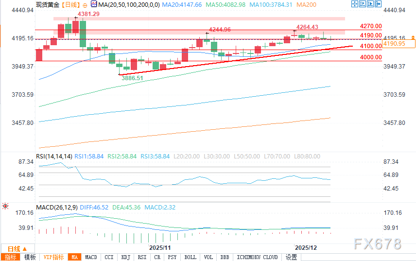 上行方向,阻力位位于4220-4270美元区间。该区间曾是金价此前的下跌起点,且市场多次尝试收复该区域均以失败告终。若多头能强势突破这一阻力区间,金价才有望再度向历史新高发起冲击。
