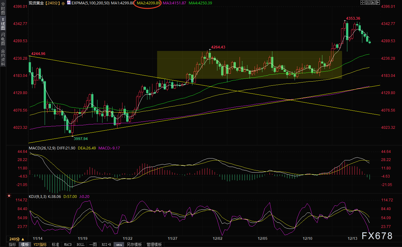 汇通财经APP讯——周二(12月16日)亚洲时段,黄金价格出现回落势头,一度跌破4300美元整数关口,目前交投于4285美元/盎司附近,跌幅约0.5%。这一走势主要受到短期期货交易者的获利了结和弱多头平仓的影响。此外,乌克兰和平谈判取得积极进展的乐观情绪,也在一定程度上削弱了黄金作为传统避险资产的吸引力,导致其需求暂时减弱。