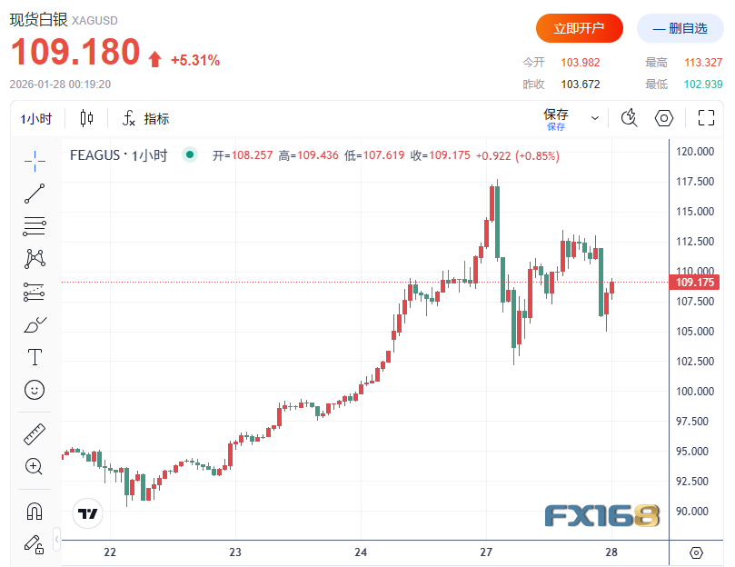 FX168财经报社(北美)讯 周二(1月27日),国际金价在前一交易日历史性突破5000美元/盎司关口后延续升势。经济与地缘政治不确定性挥之不去,推动投资者持续涌入黄金等避险资产。与此同时,市场正等待本周美联储利率决议及主席鲍威尔的表态,以研判美国利率路径与政策风险对贵金属的进一步影响。