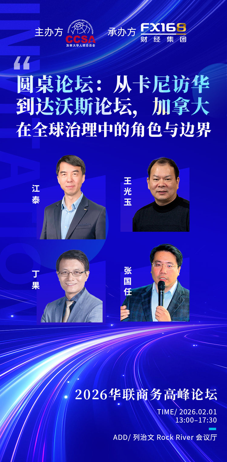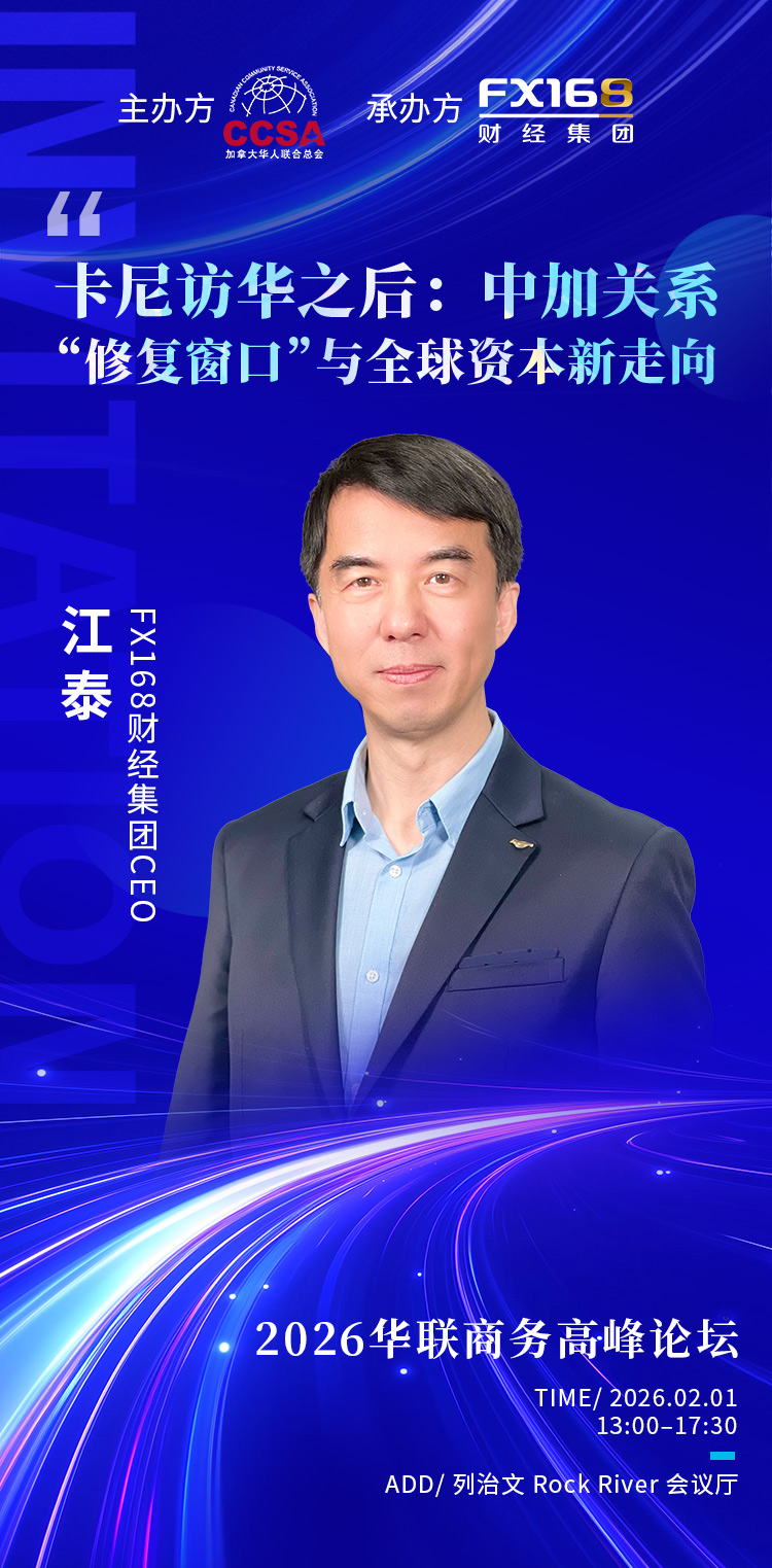 在全球政治、经济与金融格局持续重塑的背景下,加中关系与华人财富走向再次成为市场高度关注的焦点。2026年2月1日(周日),由加拿大华人联合总会主办、FX168财经集团承办的“2026华联商务高峰论坛”将在加拿大列治文河石娱乐度假酒店(River Rock)Fraser会议厅隆重举行。本届论坛以“全球变局下的财富策略——从'卡尼总理访华'看加中关系、资本走向与华人机会”为主题,围绕国际格局演变、加中关系修复、资本流向与华人机遇展开深入探讨。