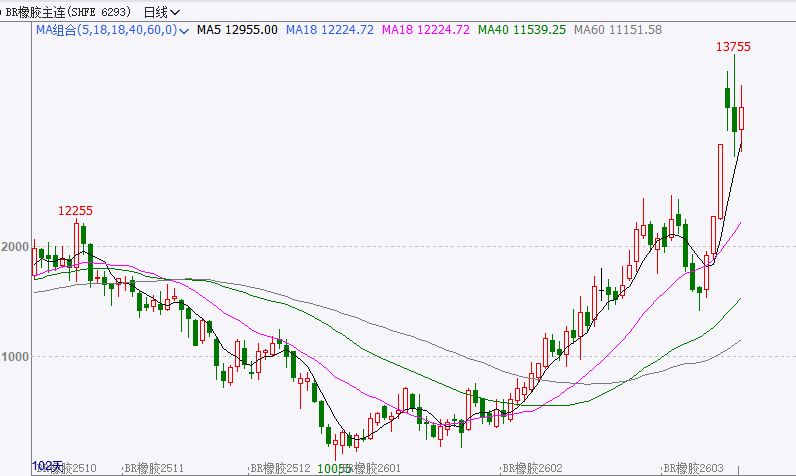 BR橡胶主力合约:震荡上行