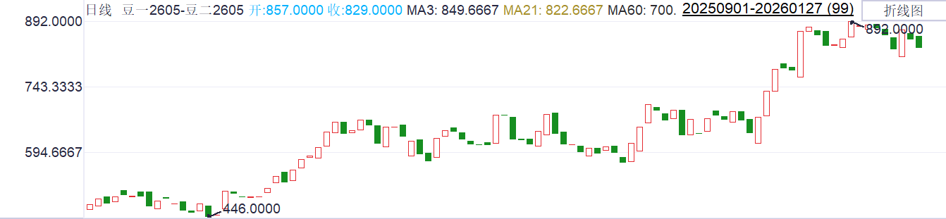 目前东北大豆现货价格上涨,现阶段高蛋白大豆供应紧张,贸易商十分惜售,且面临春节消费旺季,短期现货价格坚挺。另外,近期的豆一拍卖成交率高,且存在大幅溢价。整体看,豆一价格预计坚挺。豆二方面,南美新季大豆目前仍然是维持丰产预期;加之中美贸易关系缓和,进口大豆供应端仍然充裕。