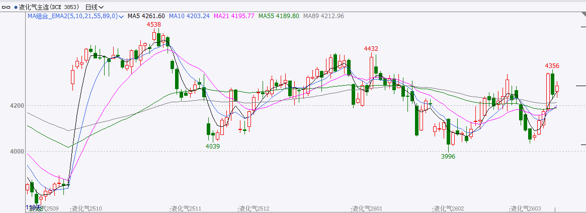 截至前一个交易日收盘,LPG走强。收阳线。