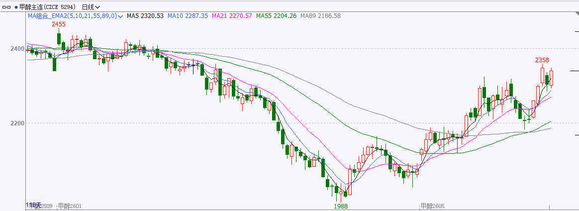 截至前一个交易日收盘,甲醇回调,主力收阳线。