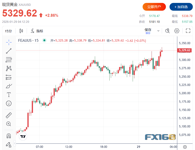沪金主力合约:大幅上涨
